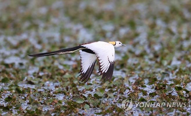 물꿩은 아열대기후에서 서식하고 현재 5마리가 주남저수지에서 관찰되고 있다. 2022.6.28 [최종수 생태사진작가 제공. 재판매 및 DB 금지]