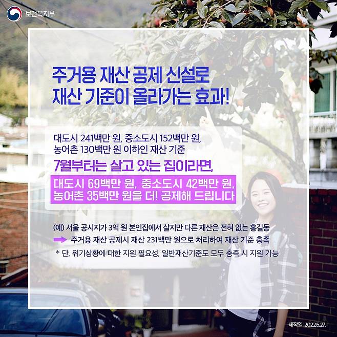 (대도시 241백만 원, 중소도시 152백만 원, 농어촌 130백만 원 이하인 재산 기준)