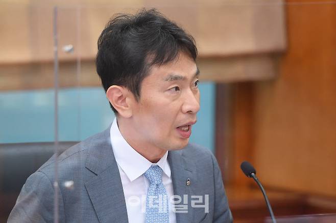 [이데일리 김태형 기자] 이복현 금감원장이 28일 오후 서울 영등포구 한국금융투자협회에서 열린 '금융투자권역 CEO 간담회'에서 모두발언을 하고 있다.
