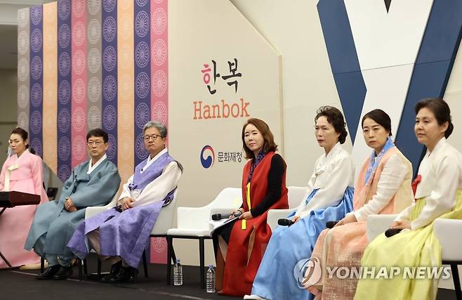 (서울=연합뉴스) 박동주 기자 = 28일 오후 서울 국립고궁박물관에서 열린 문화재청 '함께 한복 입기' 이야기 한마당에서 참석자들이 축하공연을 보고 있다. 2022.6.28