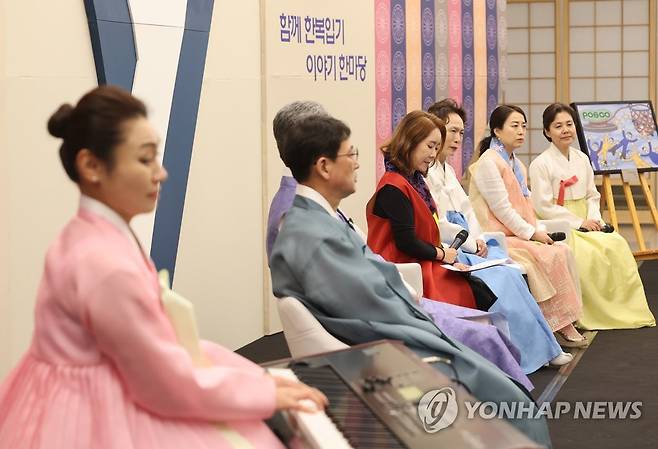 (서울=연합뉴스) 박동주 기자 = 28일 오후 서울 국립고궁박물관에서 열린 문화재청 '함께 한복 입기' 이야기 한마당에서 국민의힘 김예지 의원이 피아노 연주를 하고 있다. 2022.6.28