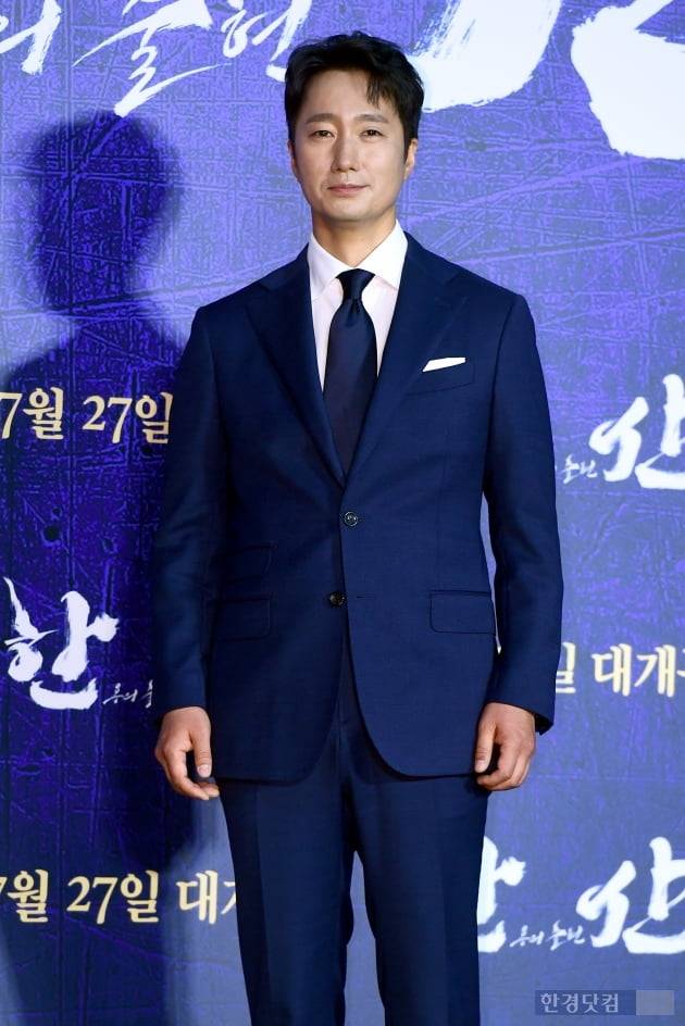 배우 박해일이 28일 오전 서울 자양동 롯데시네마 건대입구에서 열린 영화 '한산 : 용의 출현'(감독 김한민, 제작 (주)빅스톤픽쳐스) 제작보고회에 참석해 포토타임을 갖고 있다.