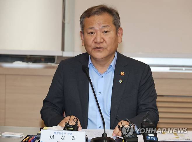기자 질문에 답하는 이상민 장관