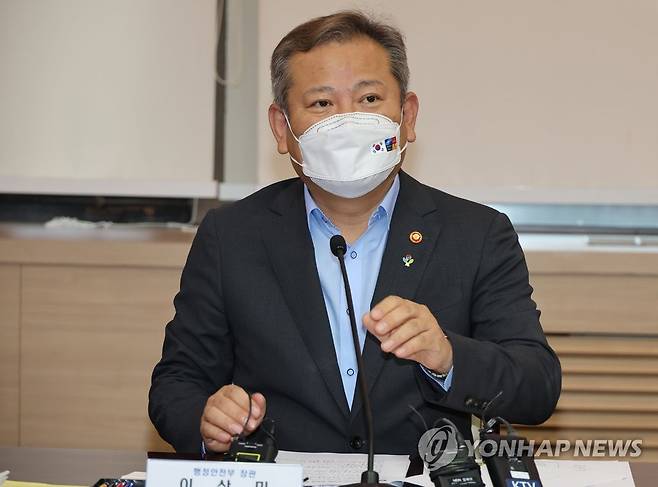 기자 질문에 답하는 이상민 장관