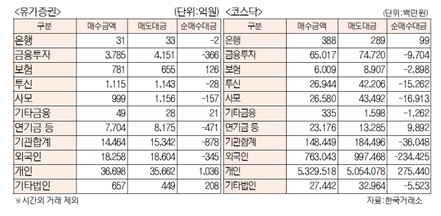 [표]유가증권·코스닥 투자주체별 매매동향(6월 28일)