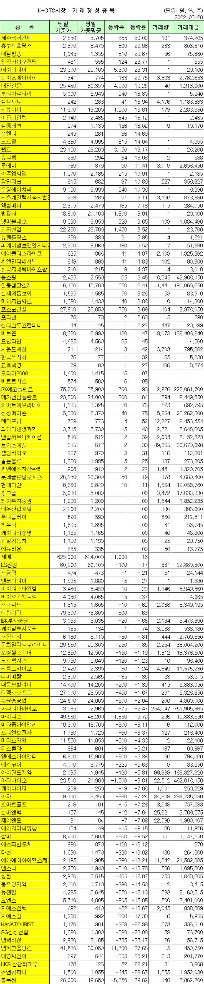 [이데일리 유준하 기자] 다음은 6월28일 K-OTC 시장 거래 현황이다.