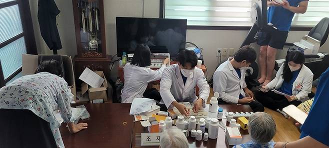 농활과는 역할이 조금 다르지만 경상남도 산청군 금서면 특리마을에는 10여 년 전부터 부산대 약대학생들이 매년 '약활'을 오고 있었다. 코로나로 인해 지난 2년 동안 실시하지 못했던 약활이 6월 24일부터 26일까지 2박3일 동안 이뤄졌다.