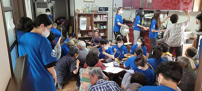 혈압과 혈당 체크, 진료와 약 처방, 주민들과 어울림놀이, 사진 촬영 등 마을 어르신들은 손자, 손녀와 함께 하듯이 모두 즐거운 표정이었다.