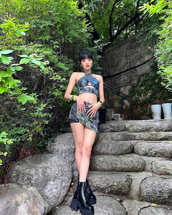 아이들 우기의 워터밤 패션은~? 여리여리한 인어공주 그 자체! 신비로운 프린팅이 그려진 셋업 아이템에 자연스럽게 풀어헤친 머리는 아름다운 인어공주를 연상시킨다. 올여름 페스티벌 룩으로 제격!