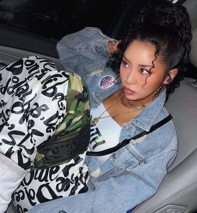 브랜드 네임이 작게 여러 겹으로 들어간 레터링 팬츠로 유니크한 포인트를 더한 아이들의 민니. 레터링 팬츠의 장점 중 하나는 브랜드를 당당하게 자랑할 수 있다는 점! 민니가 입은 팬츠는 알렉산더왕의 제품으로, 그 브랜드만의 아이덴티티가 담겨 더욱 특별하다.