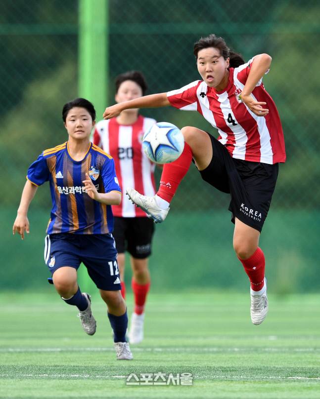 세종 고려대 이수인이 28일 삼척복합체육공원에서 열린 제30회 여왕기 전국여자축구대회 울산과학대와 경기에서 패스를 하고 있다.