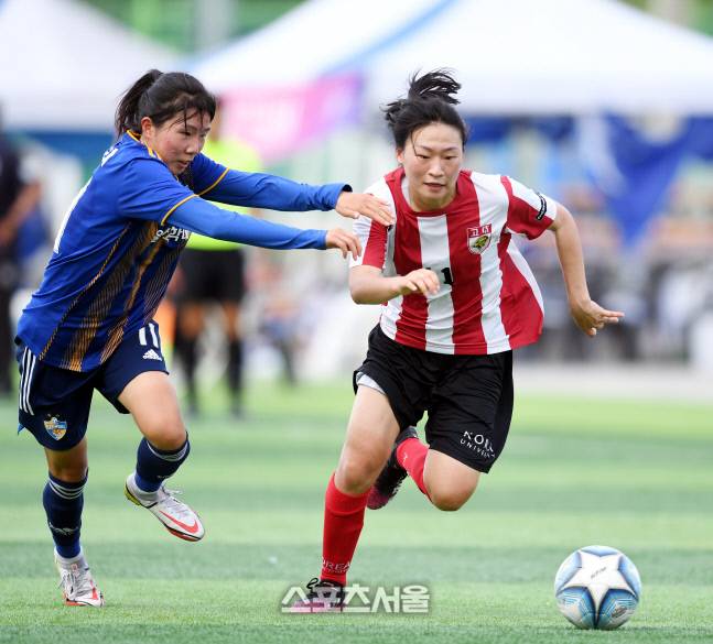 세종 고려대 이유진이 28일 삼척복합체육공원에서 열린 제30회 여왕기 전국여자축구대회 울산과학대와 경기에서 드리블을 하고 있다.