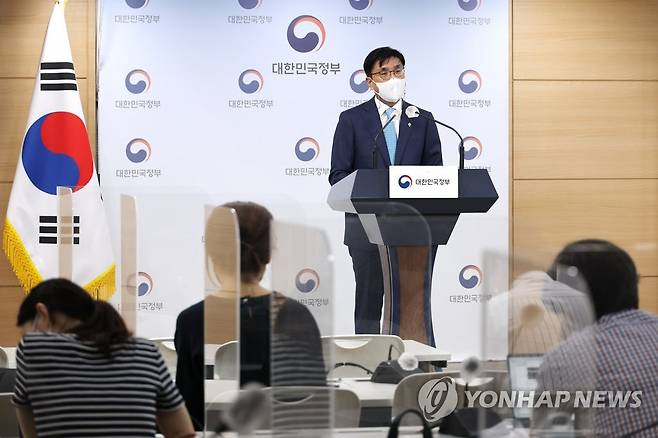 (서울=연합뉴스) 김승두 기자 = 주영창 과학기술정보통신부 과학기술혁신본부장이 27일 정부서울청사 브리핑실에서 '2023년도 국가연구개발사업 예산 배분·조정안'을 발표하고 있다. 2022.6.28