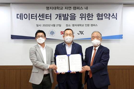 명지대학교(총장 유병진)와 SGC이테크건설(주), 제이엔케이어소시에이츠(주)가 6월 27일(월) 오후 3시 명지대 인문캠퍼스 행정동 화상회의실에서 ‘명지대 자연캠퍼스 내 데이터센터 유치’를 위한 MOU를 체결했다.