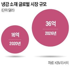 28일 글로벌 시장조사 업체 KBV리서치에 따르면 전 세계 냉감 소재 시장은 2020년 16억달러(약 2조564억원)에서 연평균 17.3% 성장해 2026년 36억달러(약 4조6270억원) 규모가 될 것으로 전망된다. 현재 냉감 소재 시장에선 공급이 늘어나는 수요를 쫓아가지 못하는 실정이다.