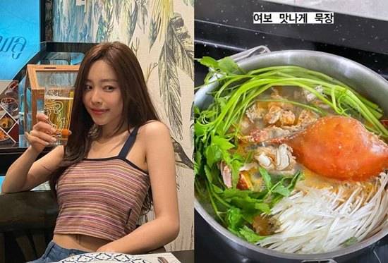 28일 이솔이는 자신의 인스타그램 스토리에"여보 맛나게 묵장"이라는 글과 함께 사진 여러 장을 게재했다.
