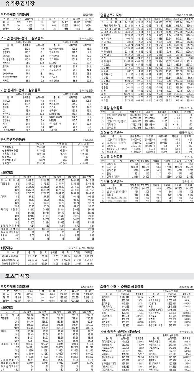 [표] 주요 증시 지표 (6월 28일)