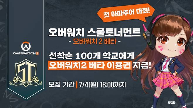 오버워치 스쿨 토너먼트 전 일정은 온라인 비대면 방식으로 치러진다. 예선전은 7월 6~7일 양일간 치러진다. 9일 시작하는 본선 진출 8개팀 소속 모두에게는 오버워치 멀티파우치가, 17일 치러지는 결승전 진출팀에는 워터파크 놀이공원 자유이용권이 제공된다. 대망의 우승팀에게는 학교 발전 기금 200만원이 참가자들의 이름으로 소속 학교에 전달되며, 게이밍 마우스도 증정된다.