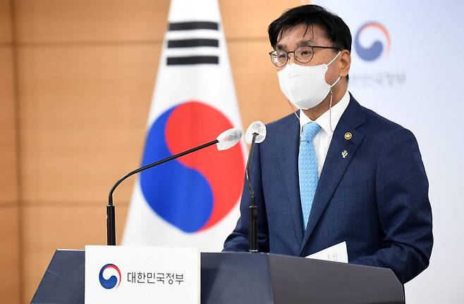 주영창 과학기술정보통신부 과학기술혁신본부장이 지난 27일 서울 종로구 정부서울청사에서 '2023년 국가연구개발사업 예산 배분·조정 안'을 발표하고 있다. 과기정통부는 23년도 주요R&D 예산을 전년 대비 1.7% 증가한 24.7조원 규모로 책정, 주요 정책 분야에 대한 '전략적 투자 강화', '국민 체감성과 창출 촉진' 등에 역점을 두고 투자한다.
