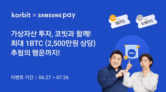 (지디넷코리아=김윤희 기자)국내 가상자산 거래소 코빗(대표 오세진)은 삼성페이 연동 기념 이벤트를 진행한다고 28일 밝혔다.