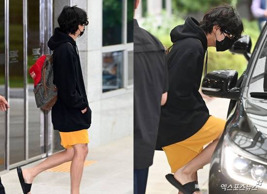 공항에는 뷔를 보기 위해 팬들과 취재진이 자리하고 있었다. 뷔는 검정색 후드 티셔츠에 노란색 반바지, 슬리퍼 차림으로 입국장을 빠져나온 뒤 팬과 취재진을 향해 어떠한 인사도 없이 미리 준비된 차량에 탑승했다. 얼굴은 선글라스와 마스크로 가렸다.