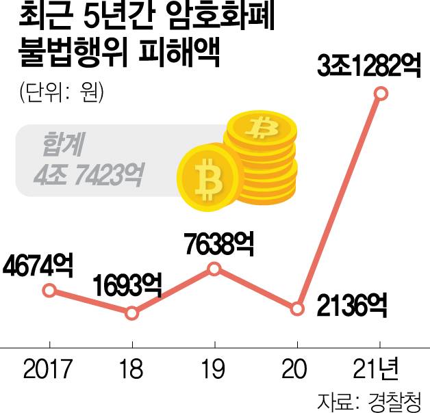 암호화폐 관련 사기 피해자도 마찬가지다. 올해 5월 ‘수익을 보장해준다’는 문자를 받고 카카오톡 단체 채팅방에 참여한 C 씨는 모 대표 계좌에 총 8790만 원을 입금했다. 하지만 C 씨는 이달 24일 돌연 해당 채팅방에서 강제 탈퇴당했고 C 씨는 대출 등으로 끌어모은 돈을 모두 잃었다. 해당 계좌는 C 씨뿐 아니라 다른 유사 투자자문 사기, 주식 리딩방 사기 등에도 이용되고 있었지만 현재까지 지급 정지가 이뤄지지 않은 것으로 나타났다. 경찰청 집계 결과 지난해 암호화폐 범죄 피해액은 3년 전인 2018년(1693억 원)보다 18배 이상 급증한 3조 1282억 원에 달했다. 이와 관련해 지난해 총 862명이 검거된 가운데 유사 수신, 다단계 등 사기 피의자가 전체 검거 인원의 90%(772명)를 차지했다. 지난해 금융감독원은 총 61건의 유사 수신 사기 건에 대해 수사를 의뢰했는데 암호화폐 관련 사기는 그중 절반 이상인 31건을 기록하기도 했다. 전년(16건)과 비교하면 약 두 배 가까이 늘어난 수치다.