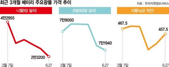 니켈·코발트 가격 하락세.. K-배터리 부담 덜었다