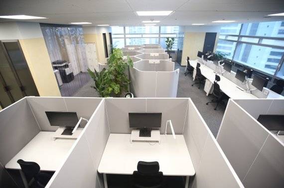 '디지털 오피스 강남'은 업무 공간, 화상회의 부스, 휴게공간, 회의공간 및 다양한 사무용품을 사용할 수 있는 OA존 등으로 구성됐다. 업무 공간은 직원들의 업무 특성을 반영해 디지털형, 보안형, 집중형의 3가지 테마로 만들어졌다.