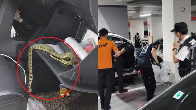 이어 "일단 정신을 차리고 차 문을 닫아놓은 뒤 119를 불렀다"며 "(출동한 소방대원이) 집게 같은 걸로 뱀을 잡았다. 뱀이 죽은 줄 알았는데 지퍼백 안에서 꿈틀거렸다"고 덧붙였습니다.