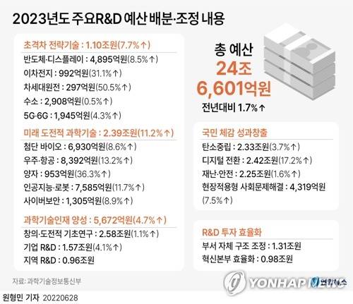 [그래픽] 2023년도 주요R&D 예산 배분·조정 주요 내용