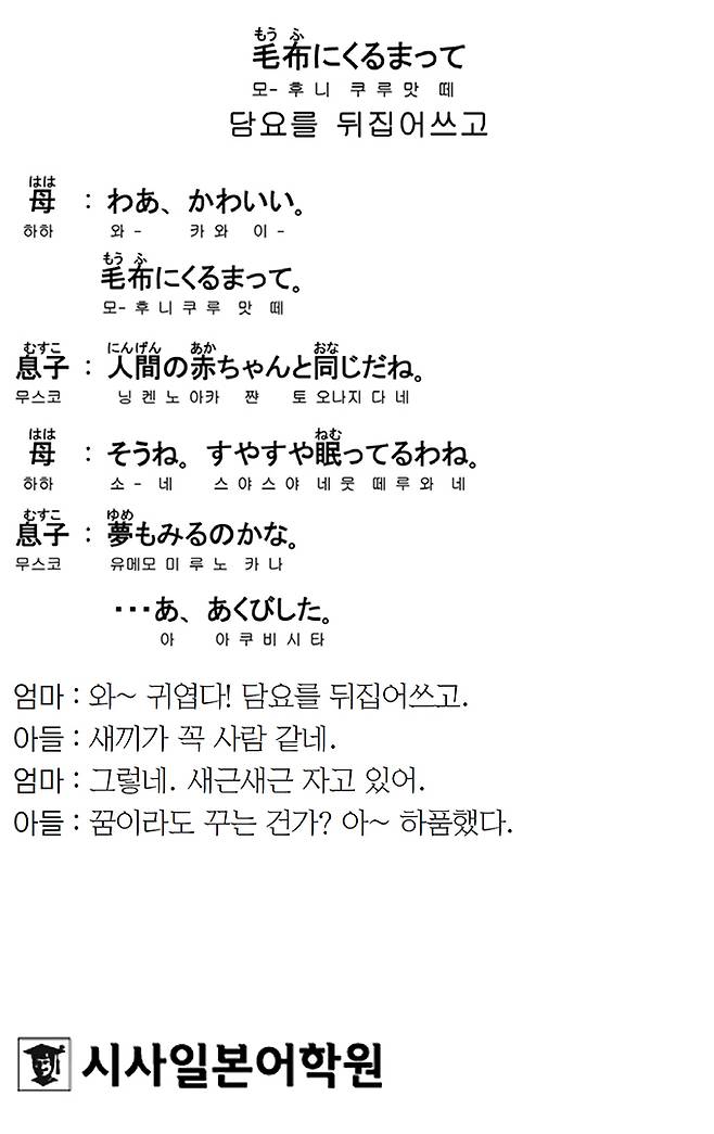 [시사일본어학원의 초단기 일본어 회화] 담요를 뒤집어쓰고