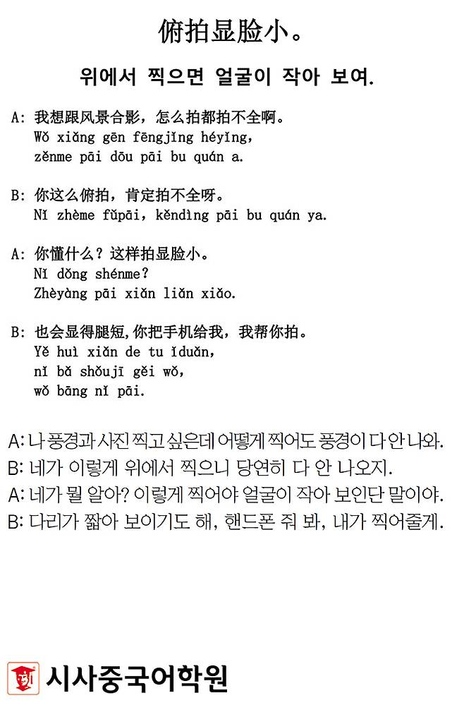 [시사중국어학원의 리얼 중국어 회화] 위에서 찍으면 얼굴이 작아 보여.