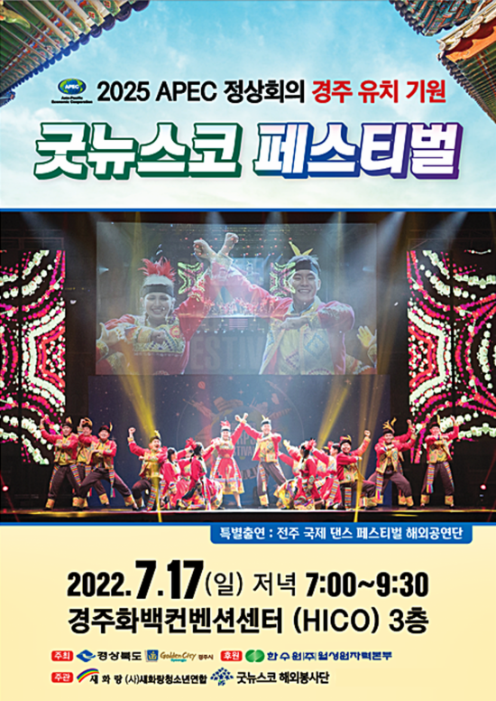 경주시는 다음달 17일 오후 7시 경주화백컨벤션센터에서 시·도민 초청 ‘2025 APEC 정상회의 경주유치기원 굿뉴스코페스티벌’을 개최한다고 28일 밝혔다.