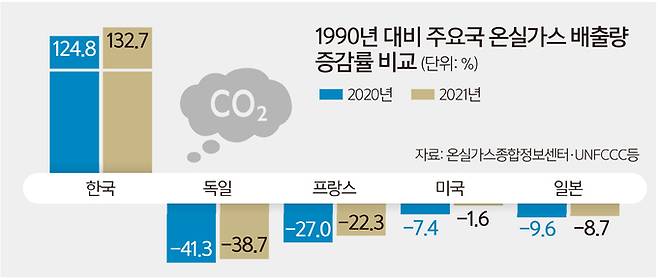 당장 1990년 배출량을 기준으로 놓고 보더라도 우리나라가 다른 주요 국가들에 비해 탄소중립 달성이 수월하지 않을 거란 걸 쉽게 짐작할 수 있기 때문이다.