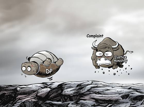 The Democratic Party (DP) is in disarray as members battle for control even after the Ministry of Justice led by Han Dong-hoon, a former prosecutor and close ally of President Yoon Suk-yeol, lodged a complaint with the Constitutional Court to weigh the unconstitutionality of DP-pushed bills aimed at depriving prosecutors of their investigative authority and handing it over to the police. [PARK YONG-SEOK]
