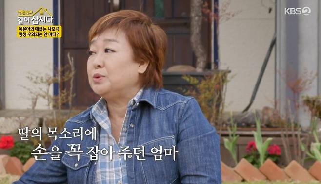 한편 혜은이 역시 어머니를 가슴에 묻은 사연을 전했다. 혜은이는 “우리 어머니는 10년간 투병을 하셨다. 아프기 전만 해도 ‘나 누군지 알아? 알면 내 손 꼭 잡아’ 하면 어머니가 내 손을 꼭 잡았었다. 그런데 어느 순간부터 잡지 않으시더라”고 당시를 회상했다.