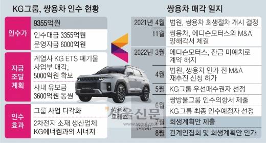 KG컨소시엄은 인수대금(3355억원)과 운영자금(6000억원)을 합쳐 총 9355억원을 들여 쌍용차를 인수한다.