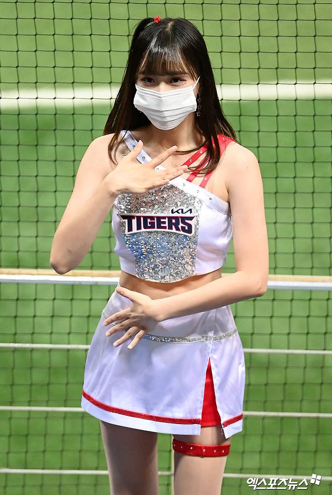 (엑스포츠뉴스 고척, 김한준 기자) 28일 오후 서울시 구로구 고척스카이돔에서 열린 ’2022 신한은행 SOL KBO리그’ KIA 타이거즈와 키움 히어로즈의 경기, KIA 치어리더가 멋진 공연을 선보이고 있다.