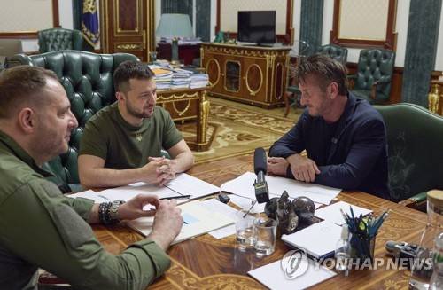 Ukrainian President Zelensky meets with US actor Sean Penn in Kyiv