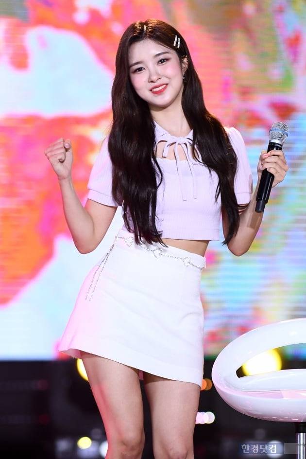 그룹 케플러 김다연이 28일 오후 서울 상암동 SBS 프리즘타워에서 열린 SBSMTV '더쇼' 현장공개에 참석해 공연을 펼치고 있다.