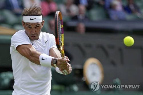 Spain's Rafael Nadal returns to Argentina's Francisco Cerundolo in a first round men's singles match on day two of the Wimbledon tennis championships in London, Tuesday, June 28, 2022. (AP Photo/Alberto Pezzali)