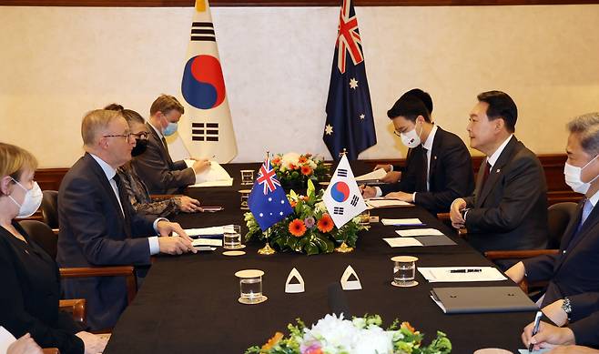 북대서양조약기구(NATO·나토) 정상회의 참석을 위해 스페인을 방문중인 윤석열 대통령은 28일(현지시각) 오후 앤서니 노먼 알바니지 호주 총리와 한·호주 정상회담을 했다. 윤 대통령의 나토 순방 일정에서 첫 번째 공식 일정이다.