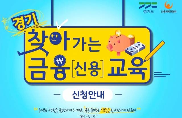 경기도는 ‘경기 찾아가는 금융·신용 교육 사업’ 접수를 7월 4일부터 시작한다고 28일 밝혔다. 기간은 4일부터 12월 23일까지 이며, 인원은 20명 이상이다.