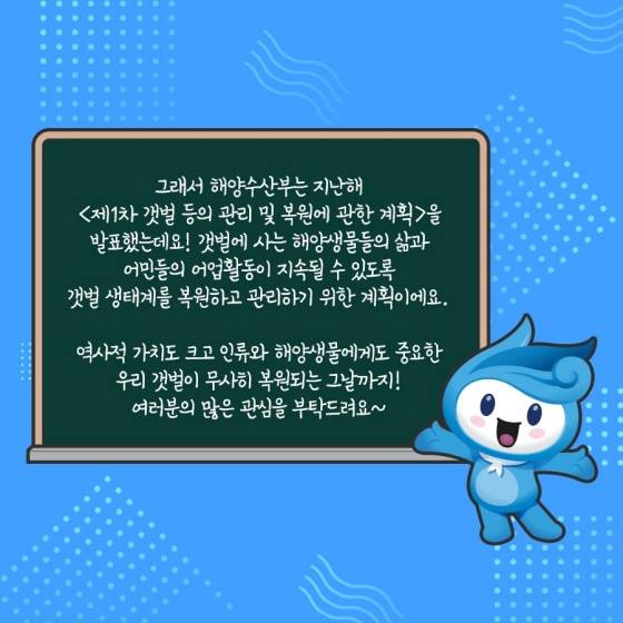 그래서 해양수산부는 지난해 ‘제1차 갯벌 등의 관리 및 복원에 관한 계획’을 발표했는데요!