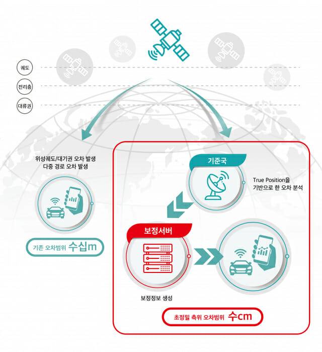 현재 가장 많이 쓰이는 위성 기반 위치정보 서비스는 각 서비스 단말의 모듈에서 위성신호만 사용한다. 신호가 도달하는 과정에서 발생하는 신호굴절, 전파간섭 등을 보정할 수 있는 방법이 없어 실제 위치와 큰 오차가 발생했다. 이에 정확하고 안전한 서비스가 핵심인 모빌리티 서비스에 많은 제약이 있었다.
