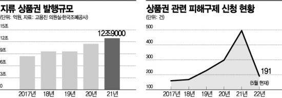 올해 1월부터 5월까지 상품권 관련 피해구제 신청 건수는 191건으로 집계됐다. 연도별로는 2017년 160건, 2018년 168건, 2019년 228건, 2020년 298건, 2021년 495건이 접수됐다. 매년 상품권 발행규모가 늘어나면서 관련 피해구제 신청도 증가하고 있는 모습이다. 피해구제 신청유형별로는 ‘유효기간 경과로 사용 거부’가 818건(60.6%)으로 대부분을 차지했다. 이어 ‘환급거부’가 181건, ‘유효기간 이내 사용 거절’이 143건, ‘상품권 미인도’가 16건, ‘기타’가 191건으로 나타났다.