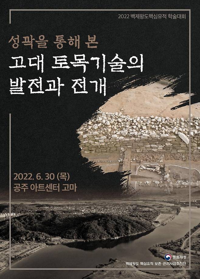 문화재청(청장 최응천)은 오는 30일 오전 10시 아트센터 고마(충남 공주시)에서 ‘성곽을 통해 본 고대 토목기술의 발전과 전개’를 주제로 학술대회를 개최한다.