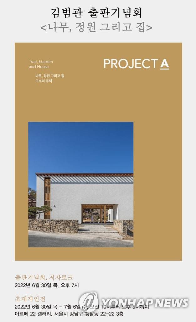 (울산=연합뉴스) 중목구조 건축 분야의 첫 저서 '나무, 정원 그리고 집'을 발간한 울산대학교 건축학부 김범관 교수의 출판전시회 포스터. 2022.6.29 [울산대 제공.재판매 및 DB 금지]