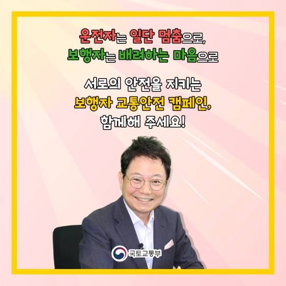 운전자는 일단 멈춤으로, 보행자는 배려하는 마음으로 서로의 안전을 지키는 보행자 교통안전 캠페인, 함께해 주세요!