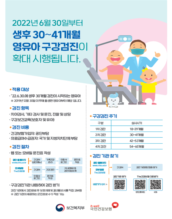 생후 30~41개월 영유아 대상 구강검진이 시행된다.